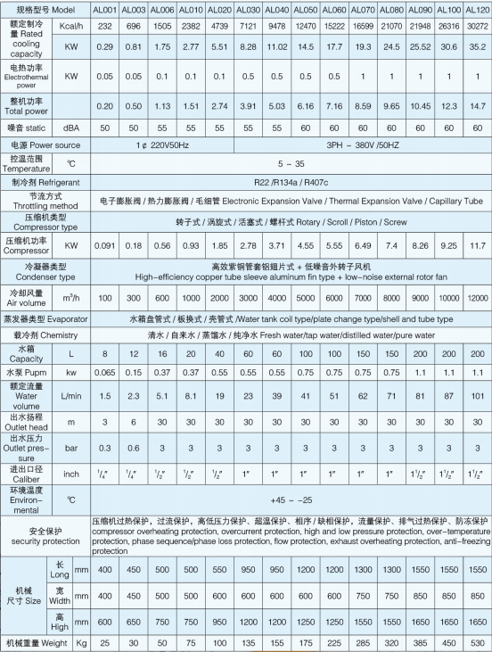 AL系列激光工业冷水机是专业用于冷却激光切割机,打标机,雕刻机,紫外激光器,CO2激光玻璃管,半导体激光器,CO2 射频管激光器,光纤激光器等设备。产品压缩机,水泵,电器元件等优先选用进口品牌配件,高效率,低能耗,结构合理,美观耐用,是同行业产品中的样本产品!