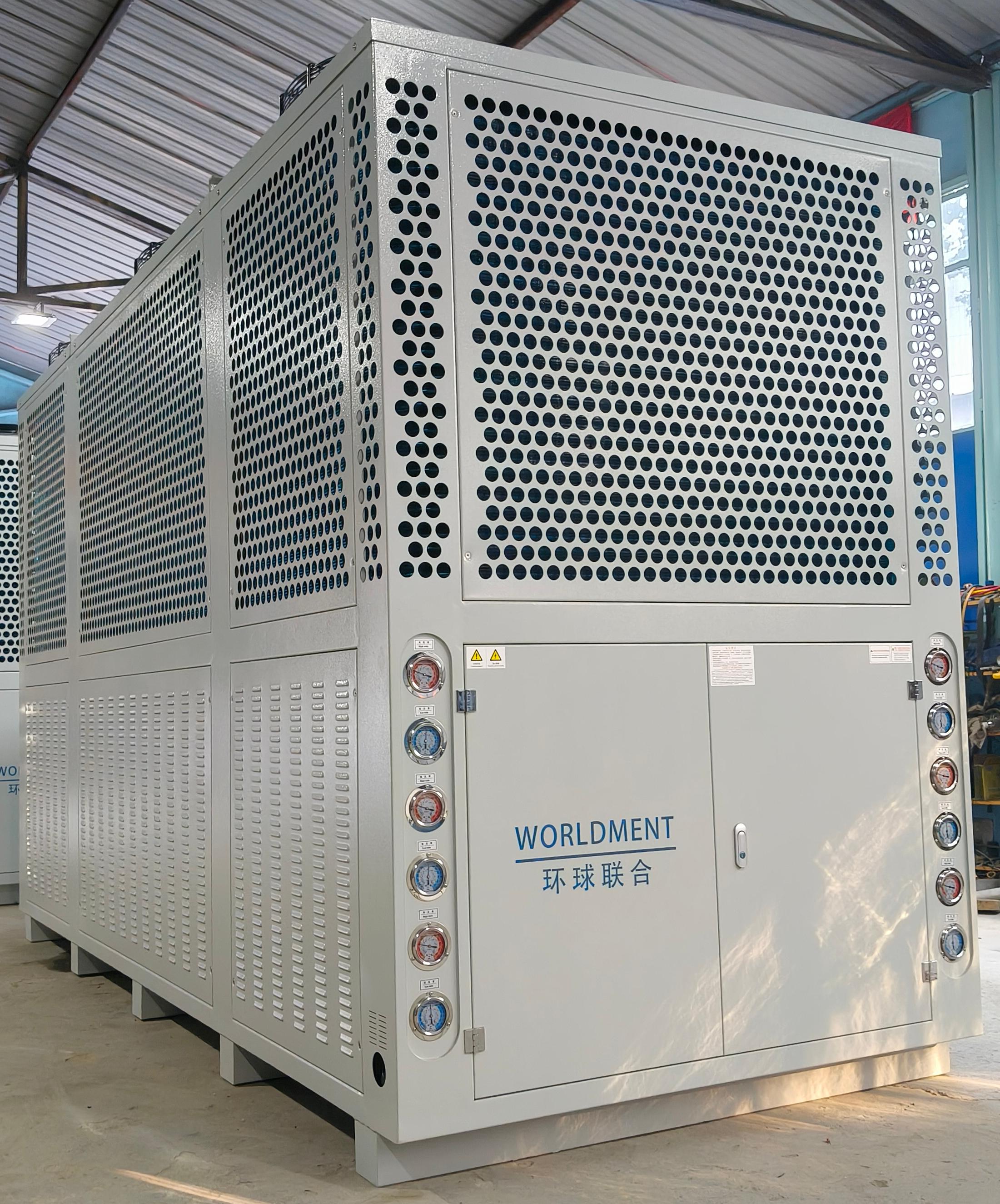 夏季高温环境对工业冷水机的运行效率和寿命会造成严重影响。高温不仅会加剧设备散热压力,还可能因散热不良导致制冷效果下降、能耗增加甚至故障停机从散热管理、制冷系统维护、水质控制、电气安全等核心维度,结合行业实践经验,需要进行一套系统化的夏季保养方案。 首先应强化散热系统维护,保障散热效率。先开始冷凝器与蒸发器的深度清洁。冷凝器是冷水机散热的核心部件,夏季需每月用高压水枪或软毛刷清除散热片上的灰尘、油污及杂物,确保气流畅通。若环境多尘,建议缩短至每两周清洁一次。蒸发器则需检查内部管路是否结垢,必要时使用专用清洗剂溶解水垢,避免热交换效率降低。冷凝器清洁后可用红外测温仪检测冷凝器表面温度,若温差超过正常值(通常≤5℃),需进一步排查堵塞问题。优化通风环境,确保设备周围预留至少1.5米通风空间,出风口避免被遮挡。对于风冷式机组,可加装防尘网并定期清洗(建议每周一次),防止积灰影响散热。若条件允许,可搭建防晒棚或调整设备朝向,减少阳光直射导致的额外温升。 其次对制冷系统专项维护,提升运行稳定性。先进行制冷剂压力与泄漏检测。夏季高温易导致制冷剂膨胀,需通过高低压表监测压力值(正常范围:高压11-17kg/cm²,低压3-5kg/cm²)。若压力异常,需排查冷媒泄漏点(如接头密封性、管路焊点),并补充至标准值。建议每季度使用电子检漏仪进行系统性检测。随后对压缩机保养与润滑管理。压缩机作为“心脏”,需重点维护:冷冻油更换:运行500-700小时后更换新油,污染严重的系统需缩短至300小时。过滤器清洁:每半年更换干燥过滤器,防止杂质进入压缩机造成磨损。振动与异响监测:每日记录运行参数,发现异常振动或噪音需立即停机排查轴承损坏或部件松动。