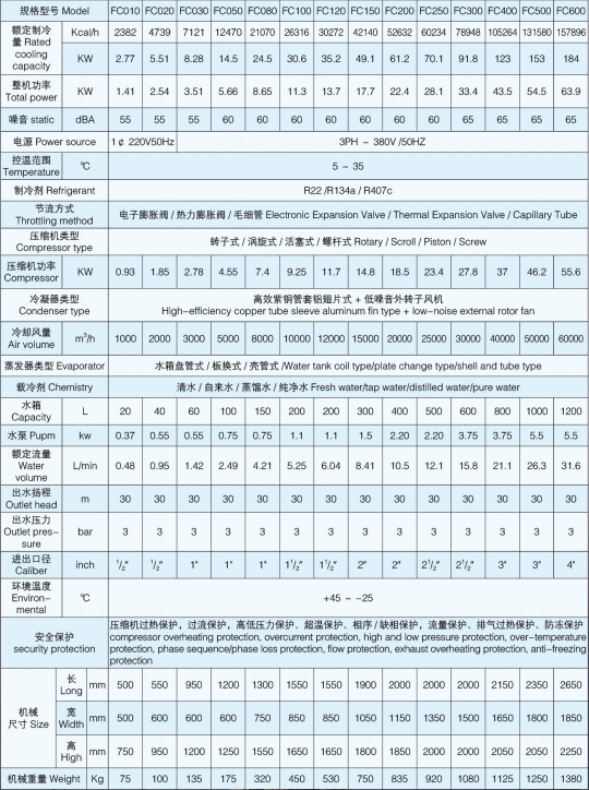 FC系列食品工业冷水机是根据食品行业的需求专业开发的一种比较有针对性的工业冷水机,整机载冷系统全部使用食品级不锈钢制成,压缩机,水泵等全部采用进口产品,噪音低,制冷快,完全符合食品行业的要求!